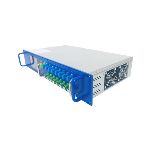 The EDFA 8x22dBm is a combiner with high linearity, optical isolation, DFB, thermoelectric cooling laser DFB. The machine is equipped with a stable light energy export circuit as well as a temperature stability control circuit and laser thermoelectric cooling device to ensure optimal laser performance and long-term stability. The microprocessor software monitors the status of the lasers, the operating parameters are displayed on the digital panel (VFD). The red light goes on to warn on the digital panel.