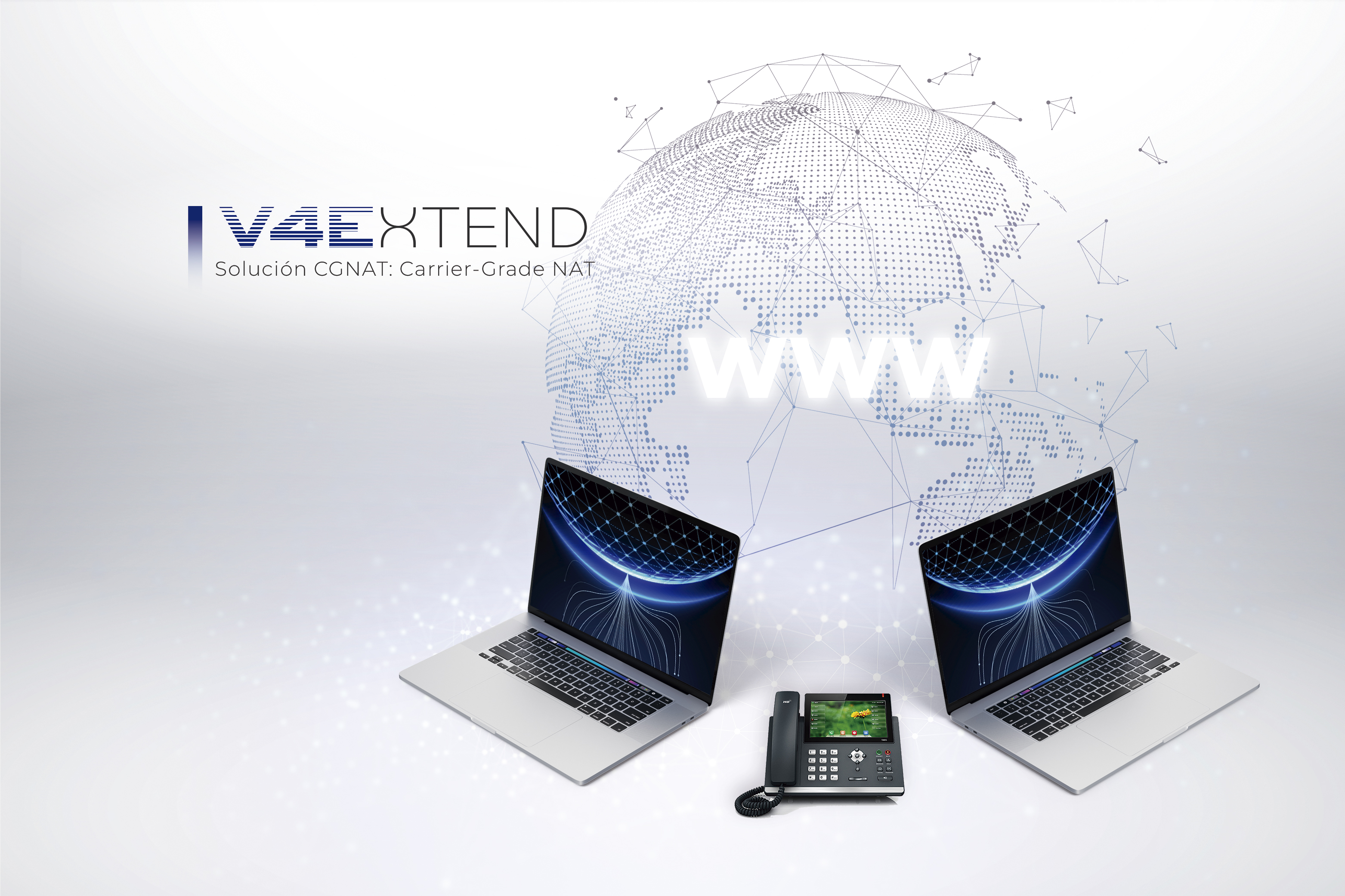 v4eXtend es una solución CGNAT (siglas de Carrier-grade NAT) que permite conectar a internet varios equipos utilizando únicamente una dirección IP públicaCon v4eXtend podemos compartir una IP pública a razón de 1:8 o 1:16 clientes.
